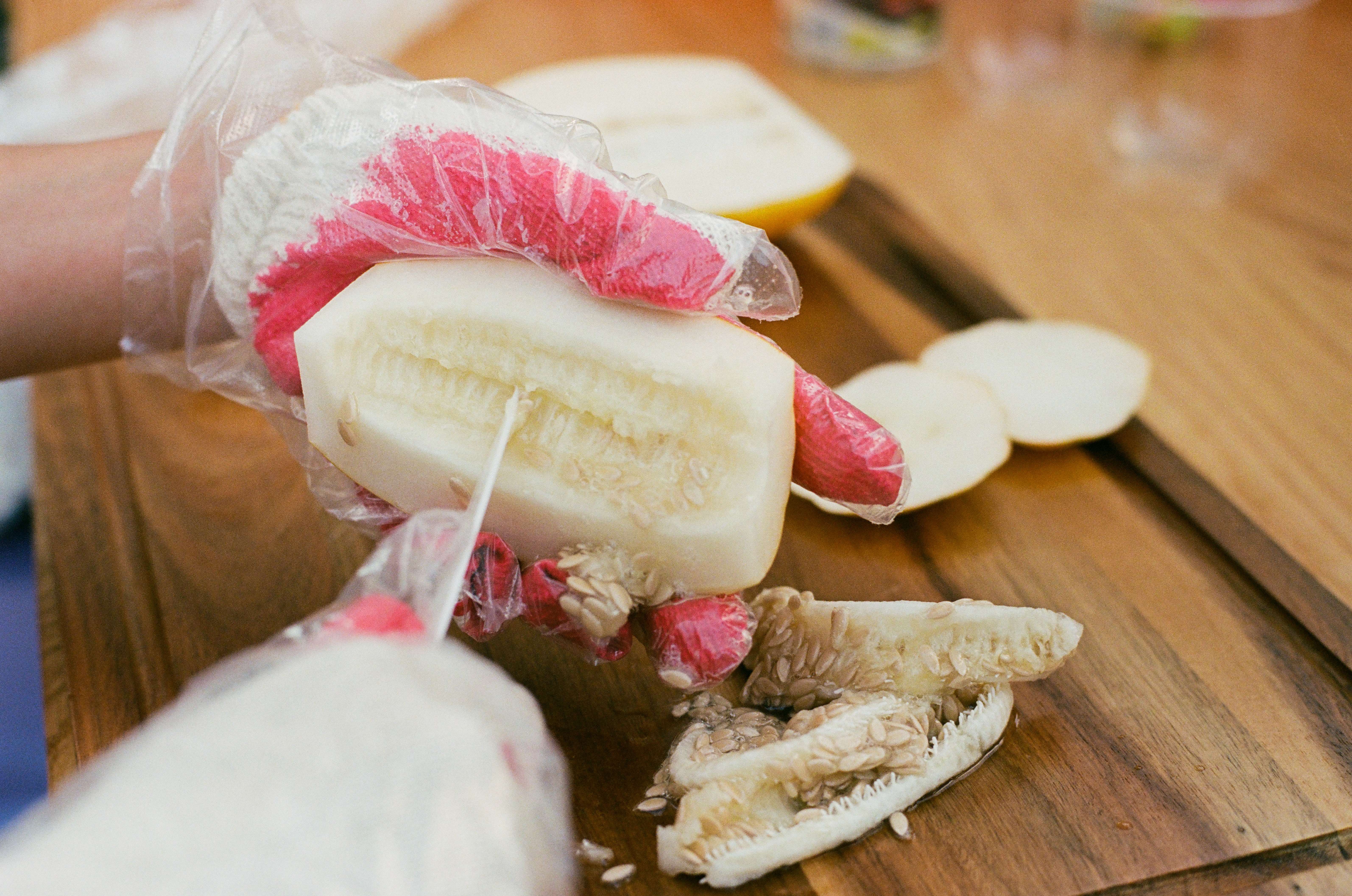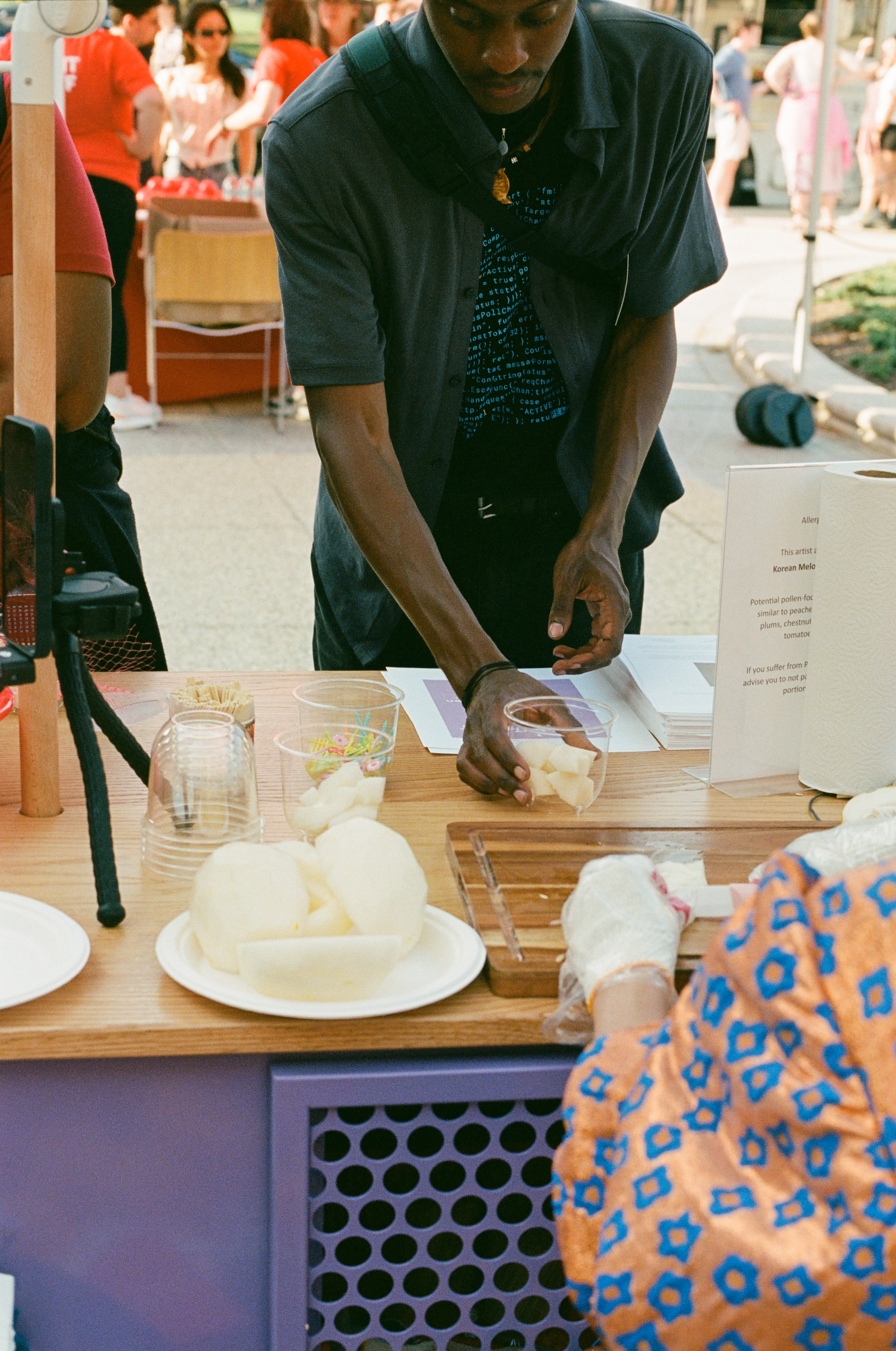 CUT FRUIT/과일까가! came to the National Museum of Asian Art in 100-degree weather with over 300lbs of Korean melons and Asian pears for their Smithsonian Solstice Saturday celebration. I was joined by artists Xena Ni and Thu Anh Nguyen as I cut fruit for hundreds of visitors and everyone came with the most incredible memories of love and care and visible hope.